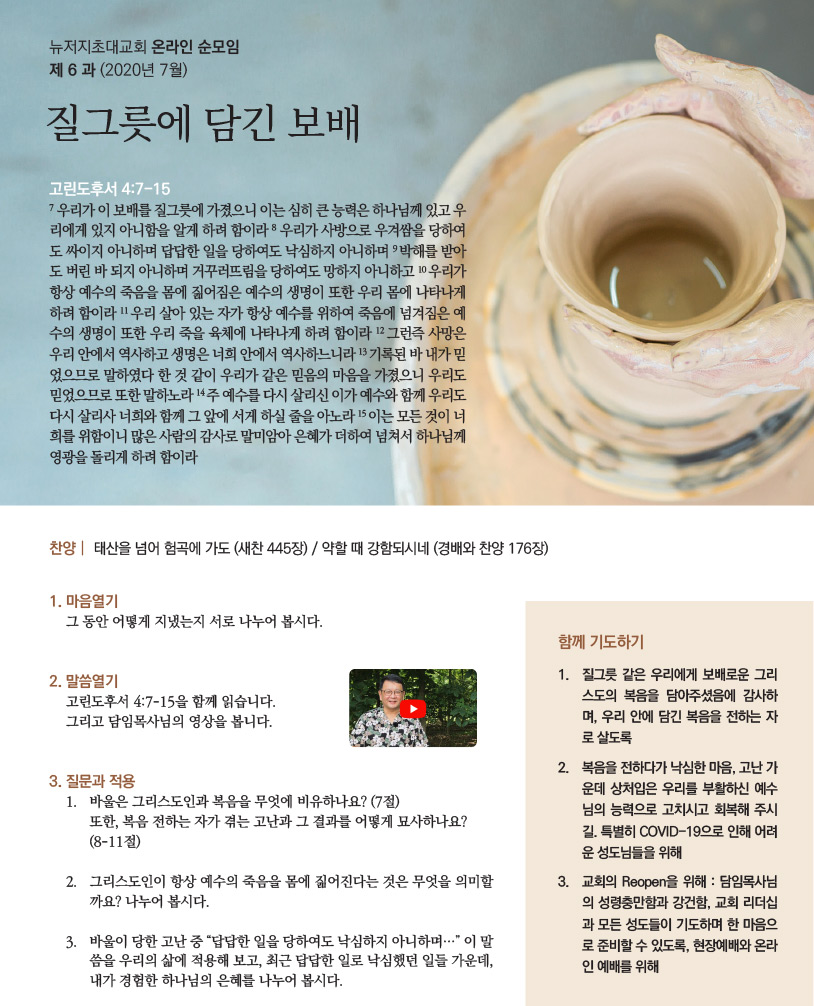 2020년 7월 순교재 “질그릇에 담긴 보배”